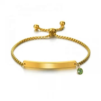 Bracciale a catena regolabile in acciaio inossidabile con lettere incise personalizzate zircone placcato oro per donne bambini Birthstone all'ingrosso